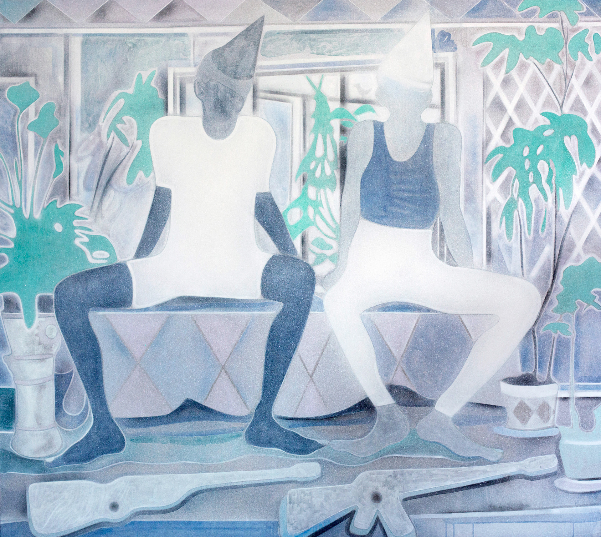 acrylics, glue and airbrush ON CANVAS